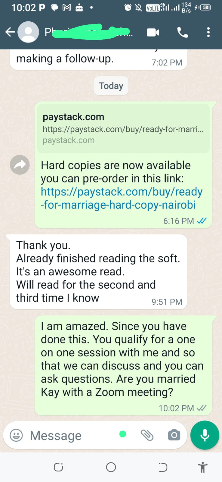 Feel free to contcact us at narkisho@readyformarriage.com or onnyonje@gmail.com